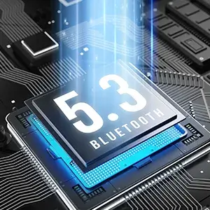 -Bluetooth 5.3, hỗ trợ HSP, HFP, A2DP, AVRCP, giúp cải thiện đáng kể tốc độ truyền và mang đến trải nghiệm âm thanh có độ trễ thấp. Lấy hai tai nghe từ hộp sạc và chúng sẽ tự động ghép nối với nhau, sau đó chỉ cần truy cập cài đặt Bluetooth để ghép nối tai nghe. Cung cấp âm thanh nổi trội trong cuộc gọi, đường truyền nhanh và ổn định