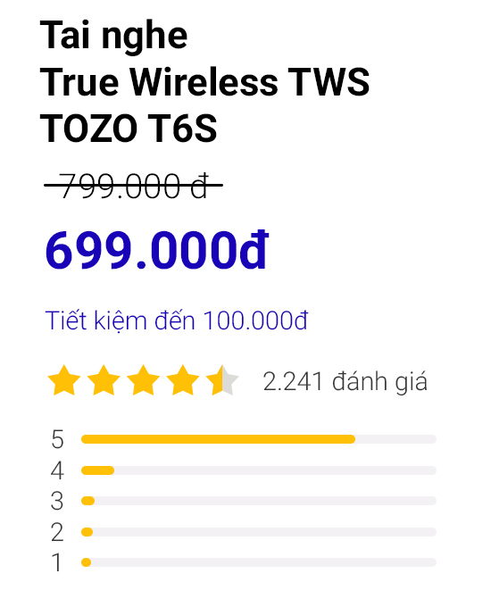 – Khử tiếng ồn xung quanh: Tai nghe nhét tai TOZO T6S có loa đường kính 6,0 mm với âm bổng trong trẻo, mic tích hợp trong tai nghe mang đến chất lượng cuộc gọi rõ ràng hơn so với các loại tai nghe không dây khác, tái tạo âm nhạc của bạn một cách sống động và tạo ra chất lượng âm thanh cuộc gọi cao.